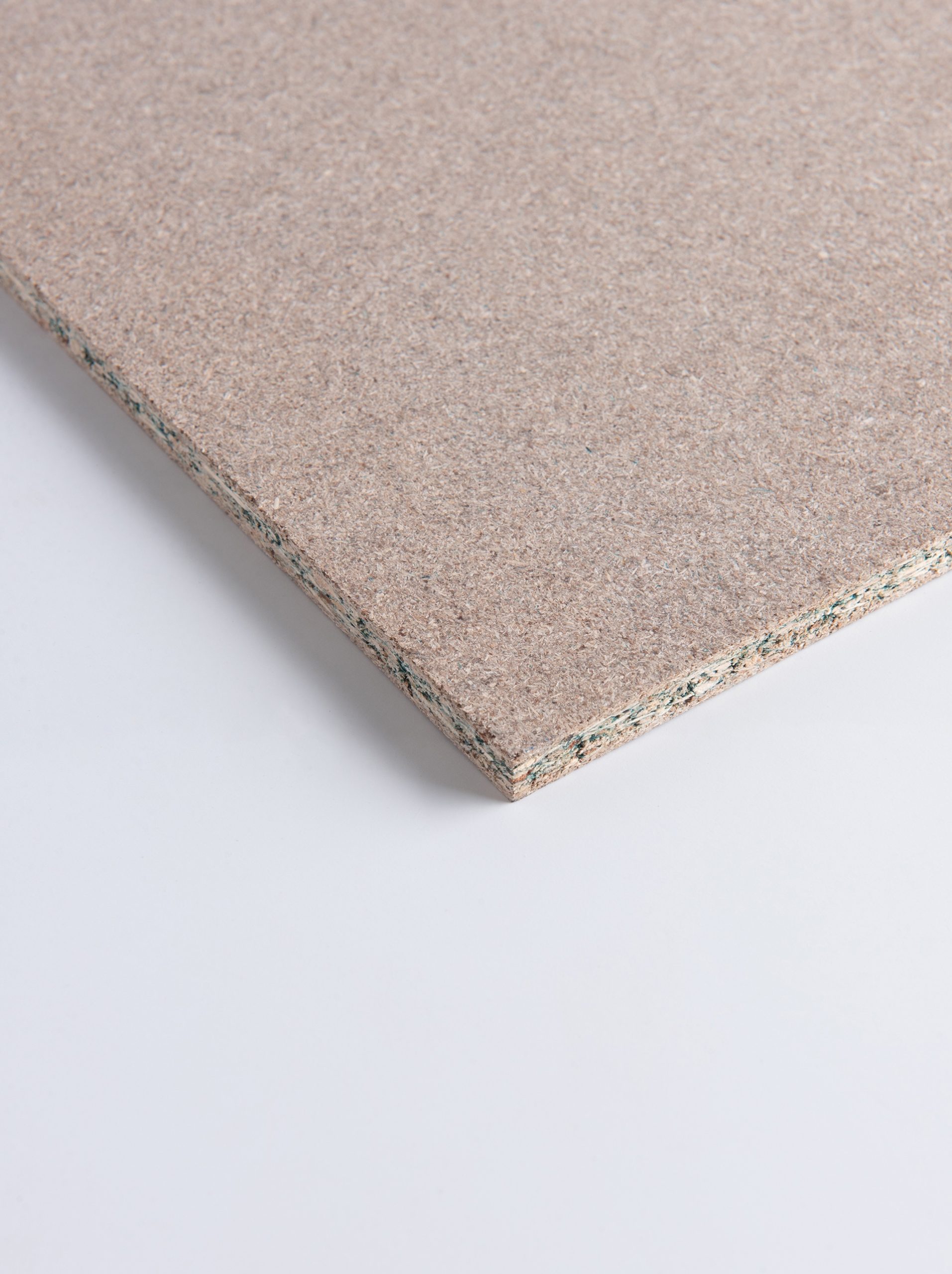 Made of rubberwood chips with a mix of resin that renders special quality, the material is more resistant to moisture than most Particle board or MDF. Green dye is added to differentiate the board from other materials. The material is an ideal choice for the space of high humidity area such as kitchens, bathrooms and sanitary furniture.